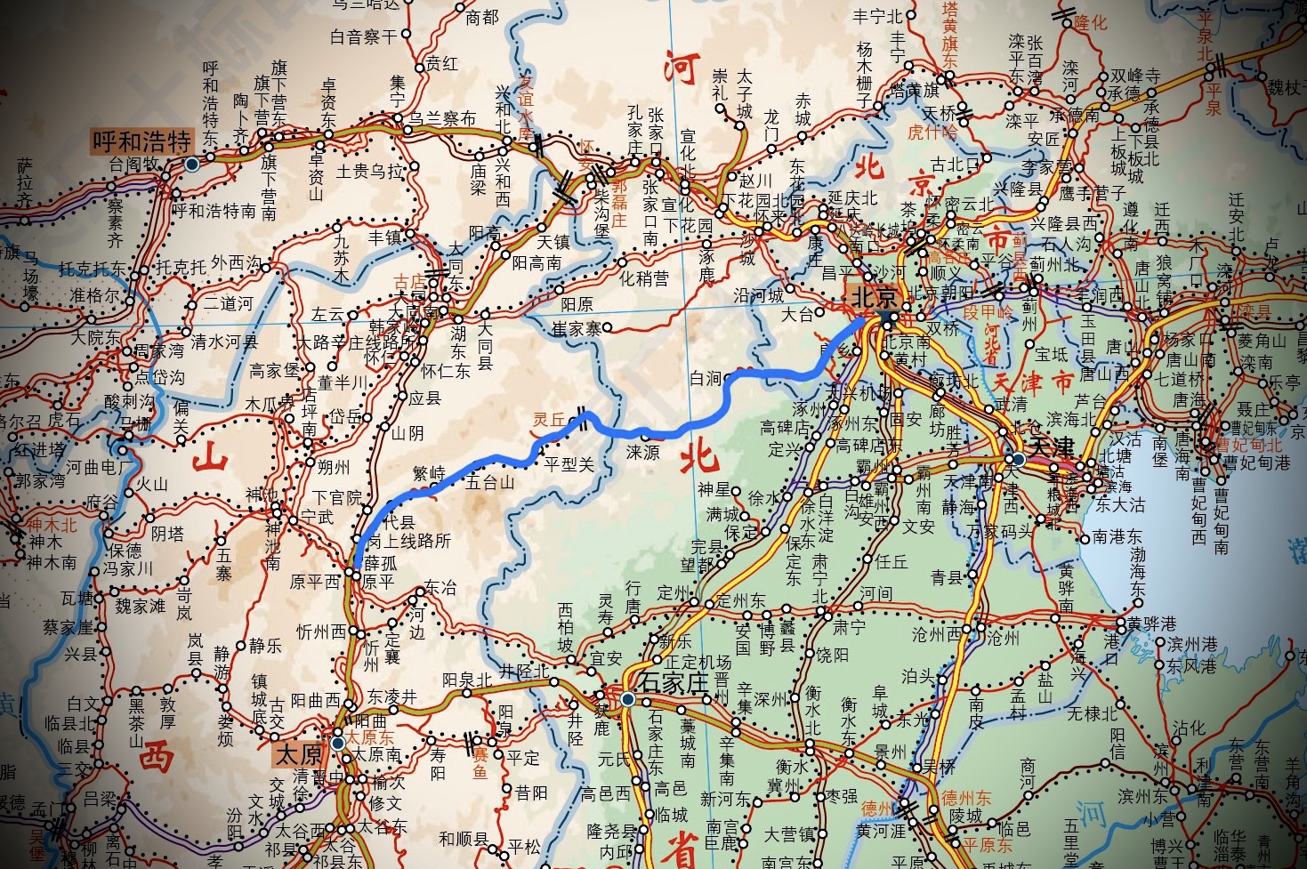 京原铁路(北京——原平)的大致走向