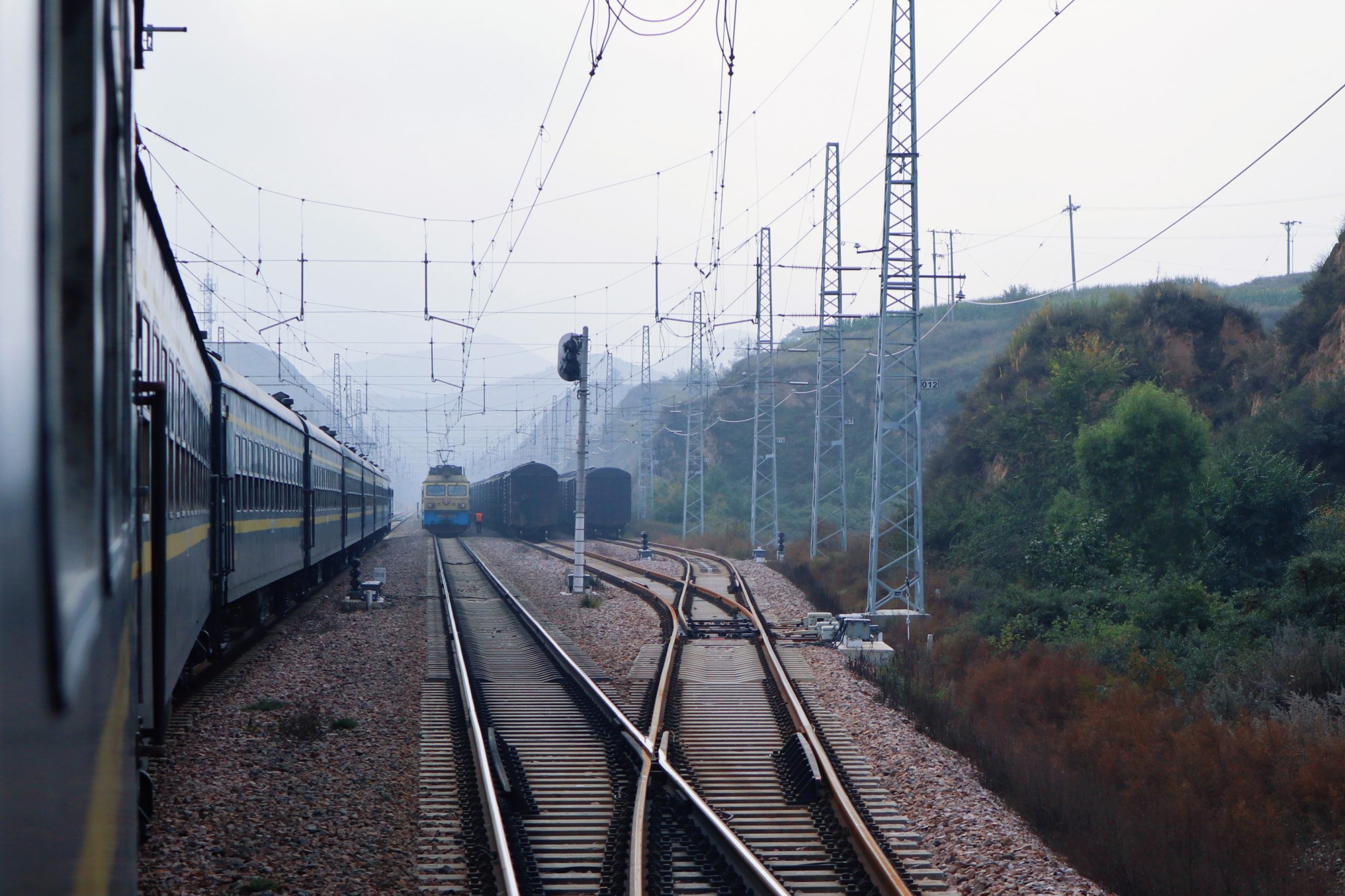 我和同行者@pchxiao在秋日的一个早晨从山西边缘的灵丘县启程,登上8817次列车。在出平型关站,即将进入平型关隧道时,把相机回头一转,留下了这张照片。过了平型关隧道,进入滹沱河谷地,明显有从山地到平原的地理单元切换的感觉,至此往繁峙、代县、原平也再无任何隧道,算是进入了山西的核心区。