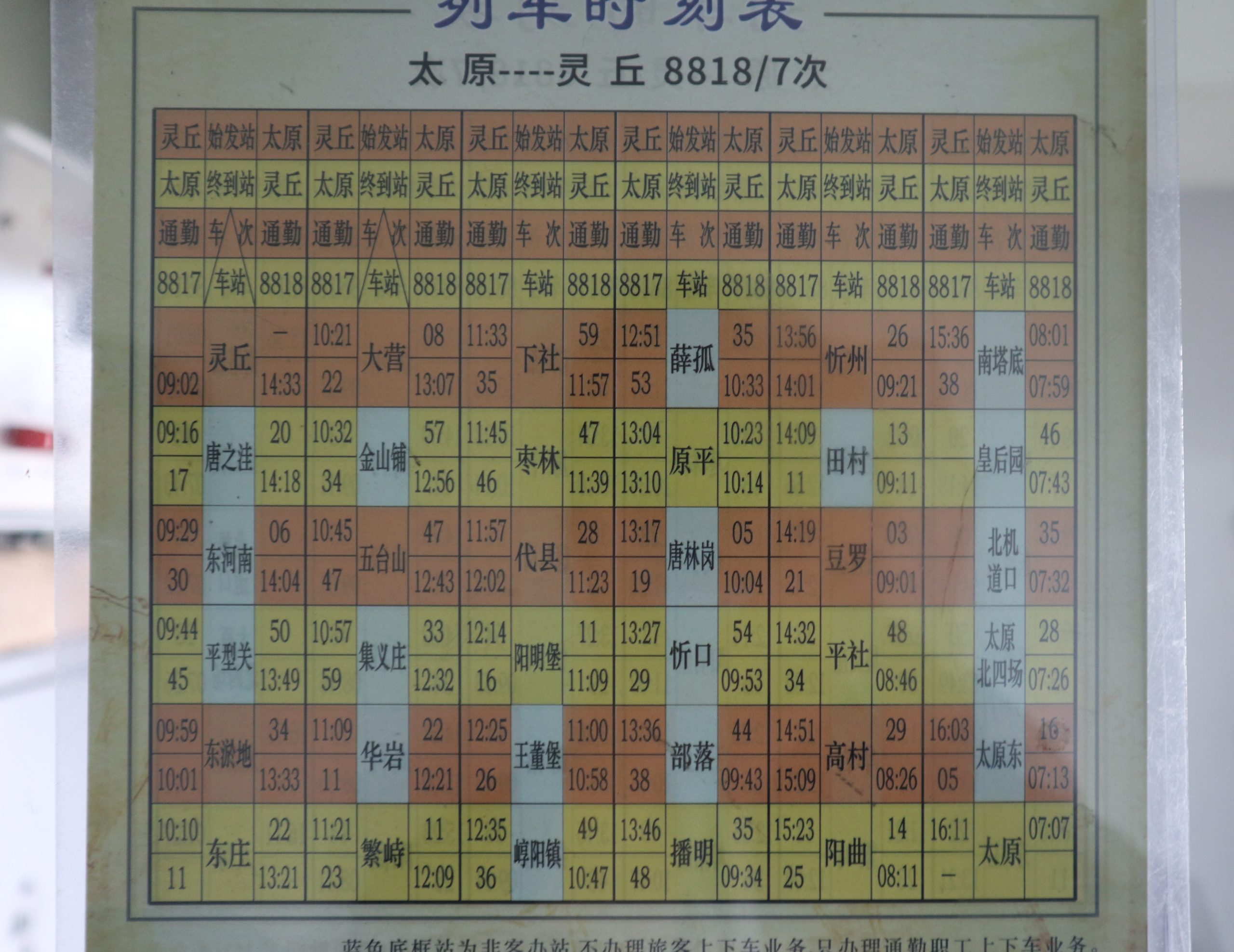 列车上拍摄地8817/8的详细时刻表