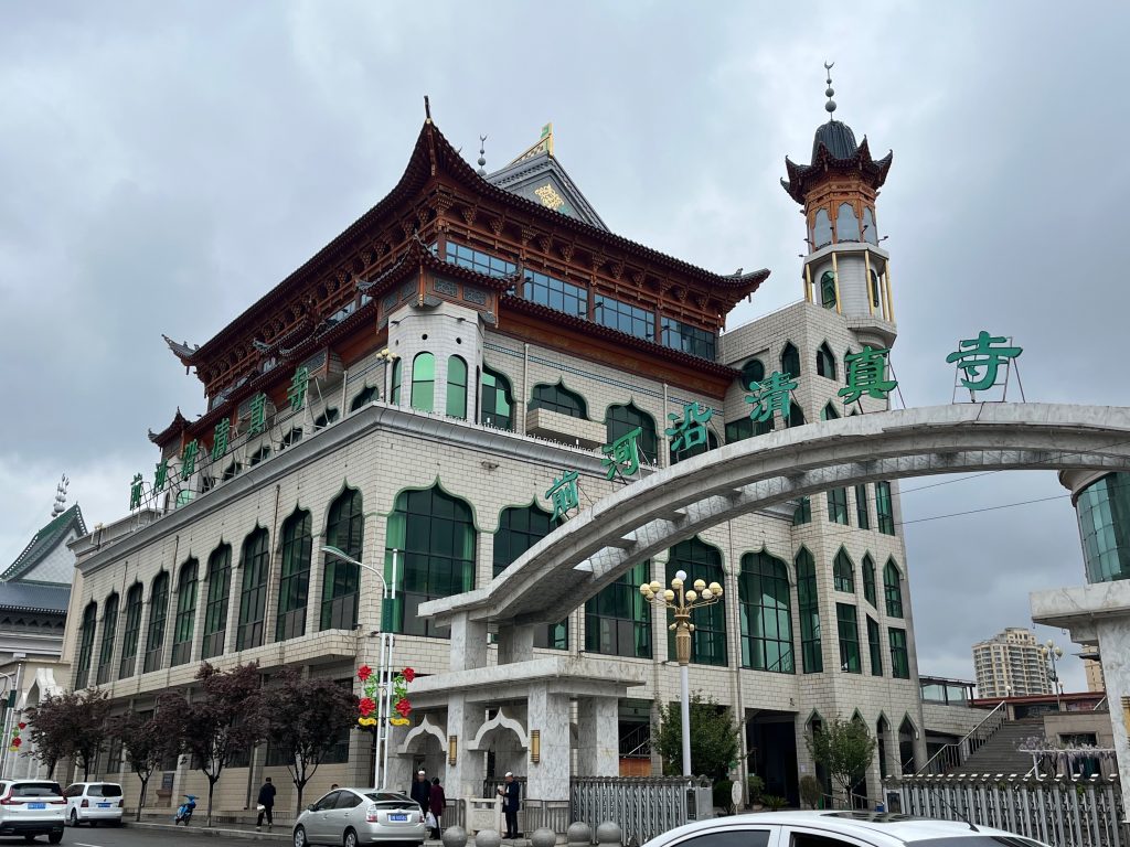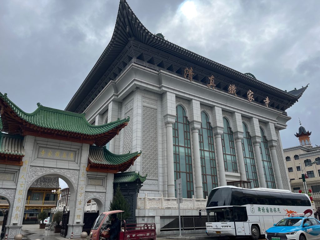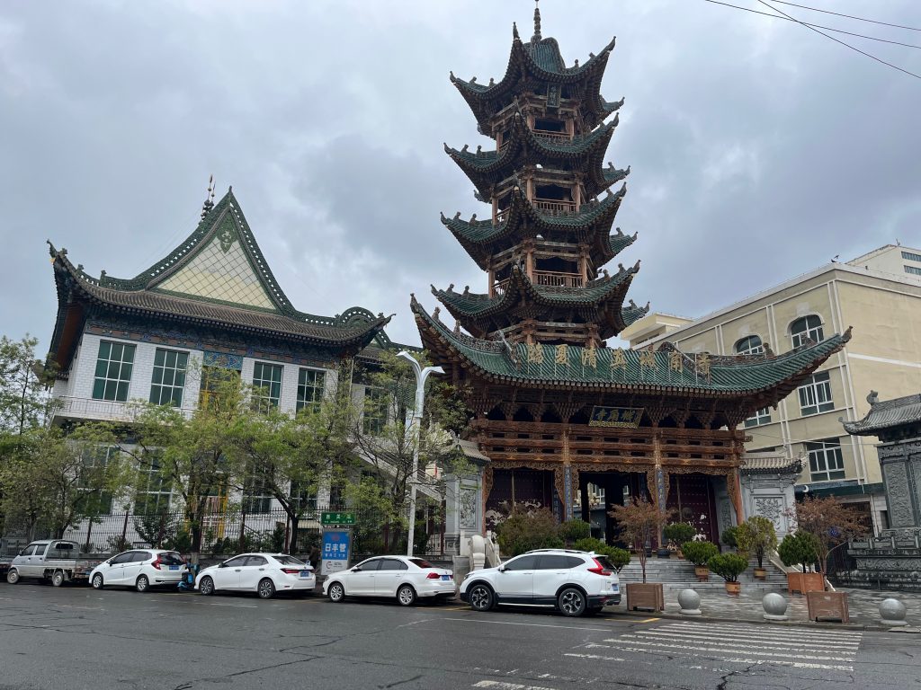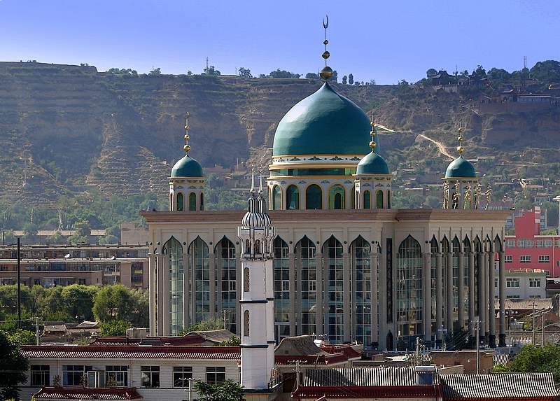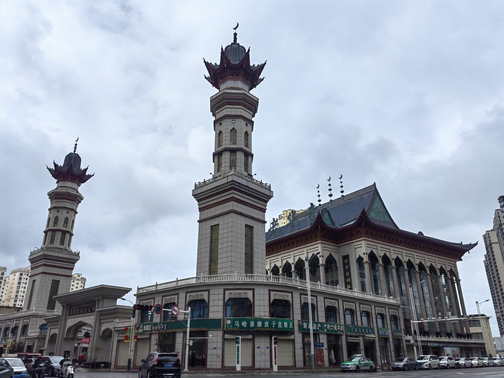 如果你在中文互联网上搜索”东方小麦加“,搜索结果大概率会是临夏。虽说这里的回民当然不如西宁或者银川多,但这个城市有一个极为鲜明的特点:清真寺几乎全部集中在所谓Downtown,而非分散在城市的各个角落。临夏的各大清真寺,全都集中在一块叫”八坊十三巷“的地方,马路上看过去,就是一个接一个的大清真寺,而走进巷子里,又是各种嵌入在民居之中的小清真寺。这些清真寺都遵守了国内2019年以来的清真寺改建计划:统一拆除近年来修建的阿拉伯式圆顶,回归传统中国清真寺的外貌,临夏各大清真寺的穹顶也基本替换成了仿木构建筑,由于落成时间不长,崭新得刺眼,风格略显奇异。如果看街上的行人,的确以带着小白帽的回民为主,盲猜一大半都姓马吧,这里面或许还混杂着东乡、保安、撒拉等信仰伊斯兰教的民族。