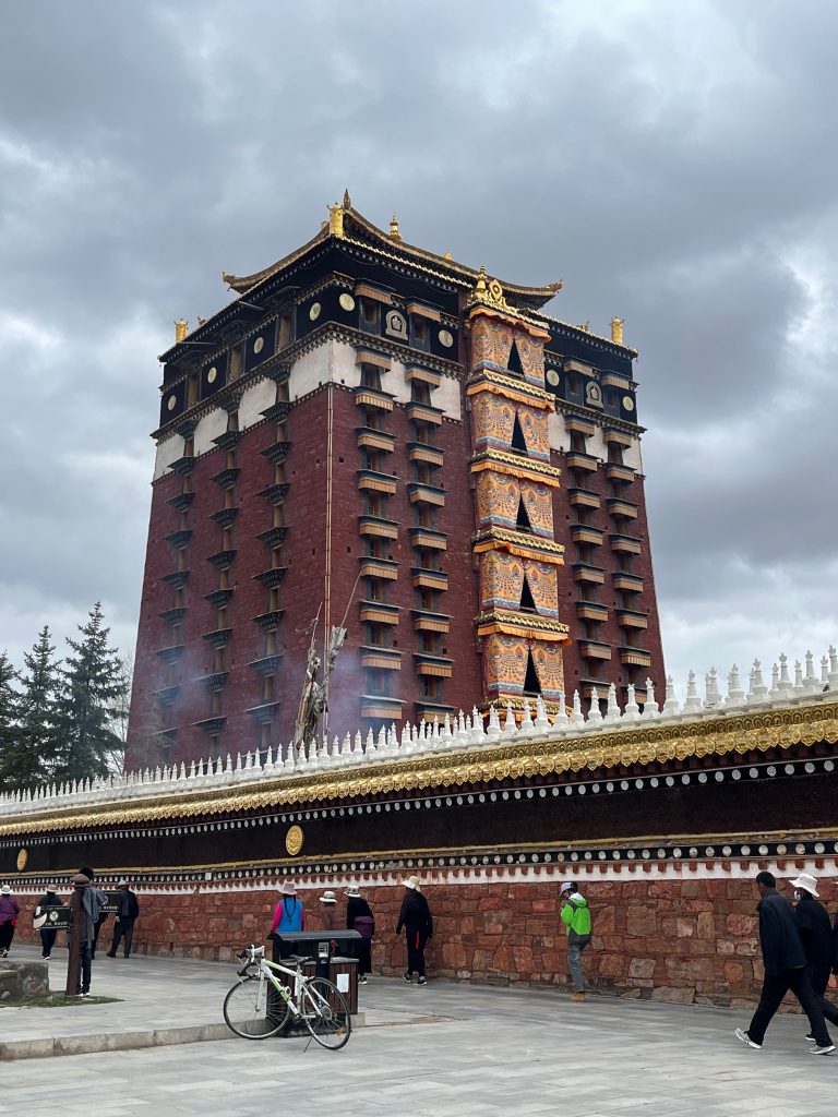 我们因为到得早,先在城北的米拉日巴佛阁转了转,这个佛阁一共有九层,脱鞋进入,之后可以一层一层登顶。随后四点多走进一家藏餐厅,成为了唯一的食客。吃完之后决定在这座小城里走走,说它是小城真不过分,虽说是州府,全市只有10万余人,估摸着城区四个街道加起来可能也就五万人左右,和内地一个市辖区动辄百万人的规模一比当然是小城了。这里并不是什么旅游胜地,也没有夏河县街上那样成群结队的僧侣,加上高海拔地区似乎触手可及的云端,给人的感觉就是天朗气清,宁静祥和。