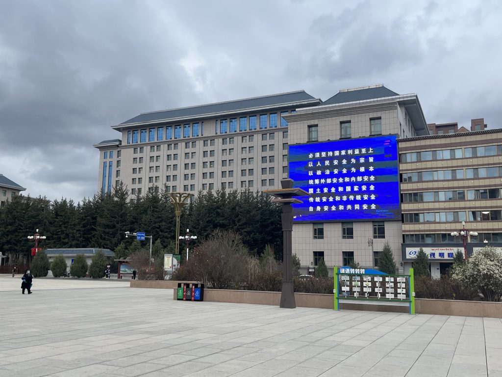 合作很符合一个高原小城的印象,街道相对工整,一条小河穿城而过,行人和车辆都不算多,整体氛围比较安静。市中心是一个(应该是拿大量转移支付)建成的世纪广场,州委和州政府分立与东西两侧,“坚决维护国家安全”的标语在大屏幕上滚动播放,十分气派。合作原名“黑措”,建国初期取民族和睦团结之意改名合作,沿用至今。在黄河上游一带这样的地名还有很多,例如海南的共和,黄南的同仁,海北的海晏,不过后面这三个都是民国时期取的名。
