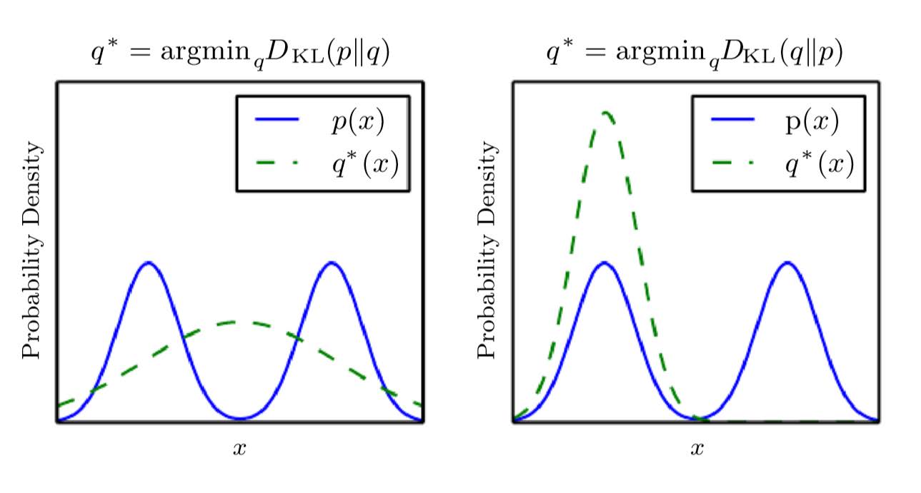 注意到$D_{KL}(P||Q)$与$D_{KL}(Q||P)$并不相等。