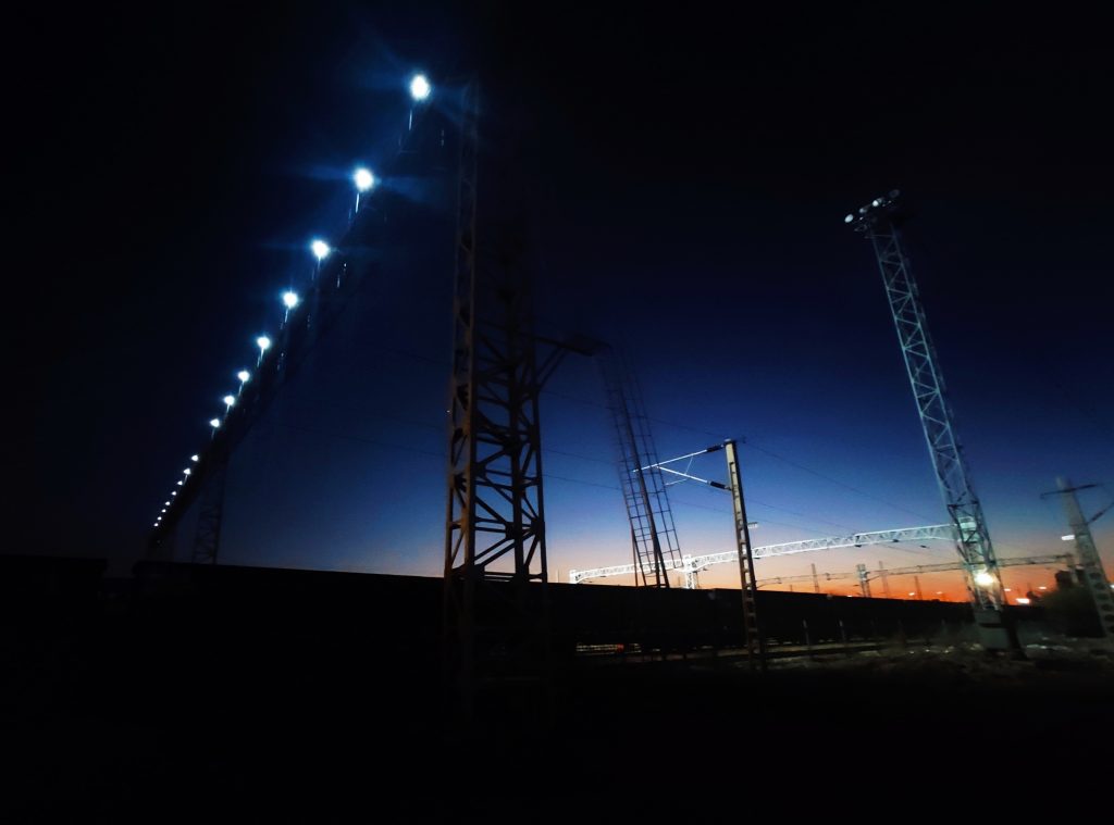 站场中间那一排探照灯把天空照的苍白,他愈发感觉到冷,便掉头往回走去。不一会儿就回到了最初的道口,而后继续往外走。渐渐地,商铺与高楼的灯光、路边餐馆诱人的香气,汽车驶过与行人交谈的声音都回来了,世界又变得有声有色。他很快就走到了大街上,正巧一辆公交车过来,他感觉方向是对的,于是就快步追过去了。