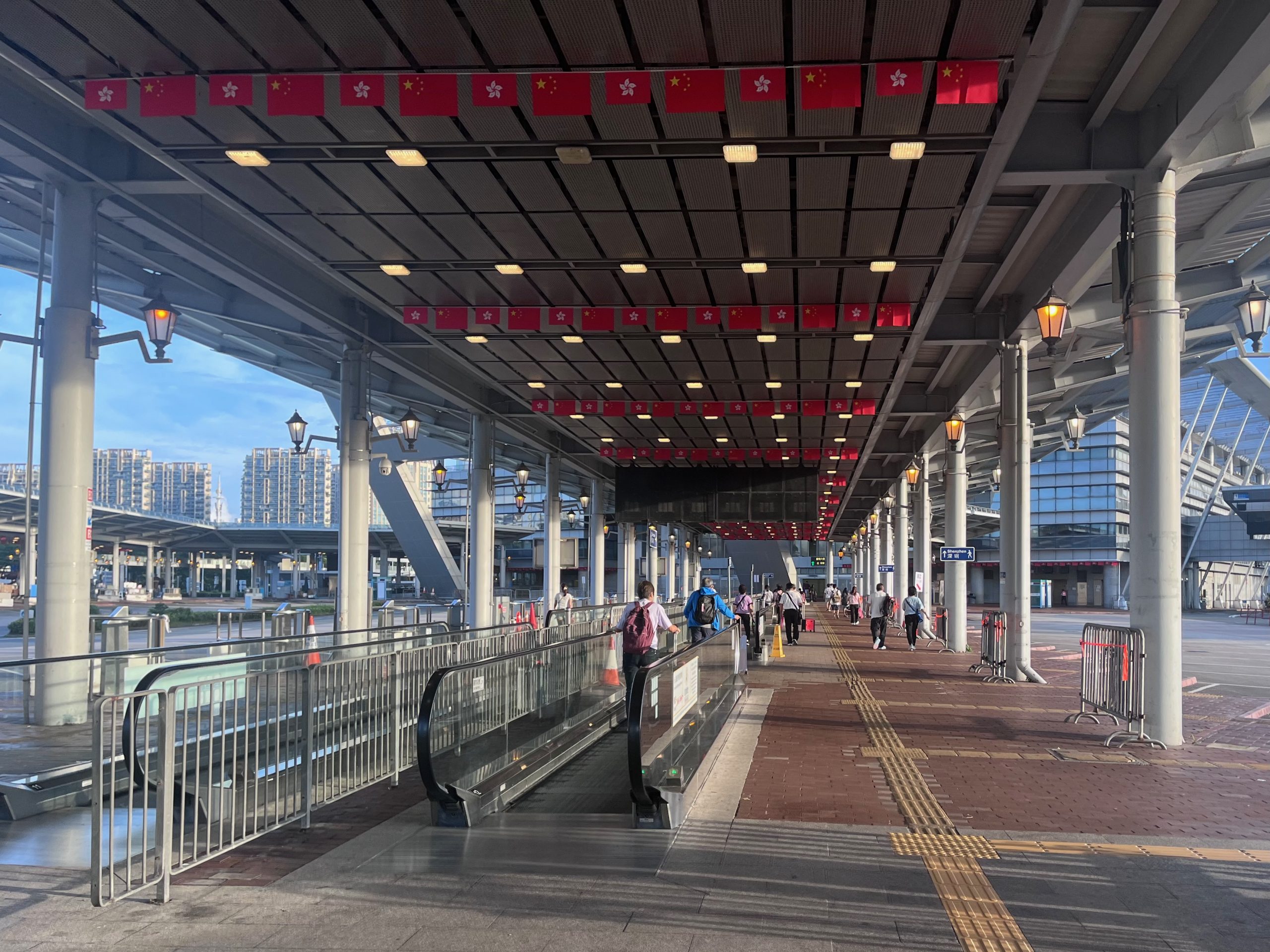 06:35,香港去内地推着菜车的大爷大妈,内地来香港背着书包的中小学生,和我,成为了今天深圳湾口岸的第一批通行者。