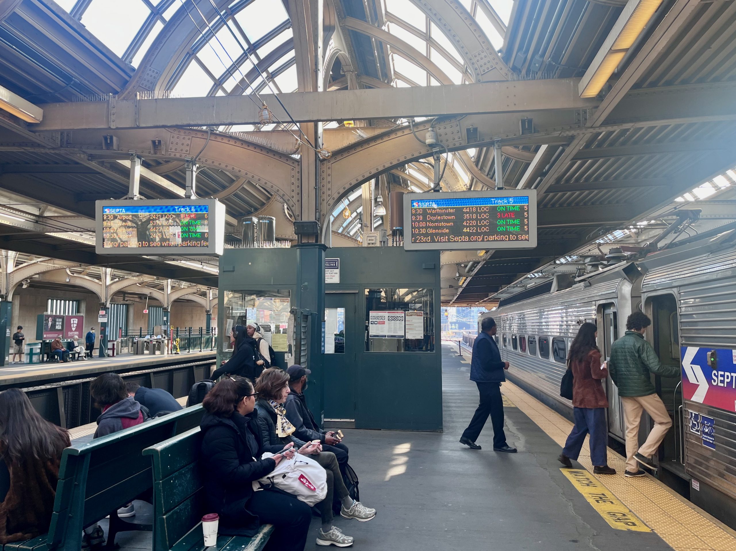 费城机场的交通很方便,20分钟后,火车开到市中心的三十街车站。我突然有了实感,开始紧张了起来,用冷水拍了拍脸,对着镜子整理了一下,我知道有人在车站里等我。于是,我赶紧小跑了几步,但随之又放慢了步伐,平复一下心情,拍了拍自己的衣领大步走进车站大厅,又看到那个熟悉的背影。