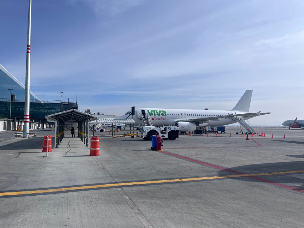 我们行程很简单,从费利佩·安赫莱斯国际机场乘坐万岁空中客车的航班飞往美墨边境城市蒂华纳。这个所谓费利佩·安赫莱斯国际机场(NLU)就是墨西哥城的“大兴机场”,由于墨西哥城的老“首都机场”(MEX)不堪重负,而且已经被城市包围地毫无扩建余地,才有了这个离市区足足40km,刚启用一年的“大兴机场”。很多廉航航线被迁移至此,我们因为临时买票价格高昂,所以只好从NLU起飞。